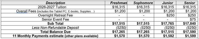 2026-2027 Tuition and Fees